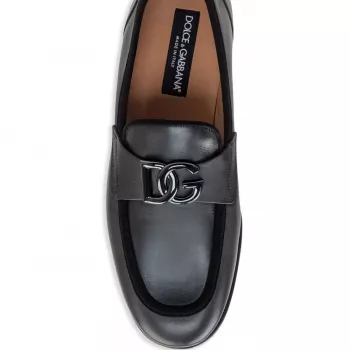 Dolce & Gabbana Leather Loafers with Velvet Detail and DG Plaque