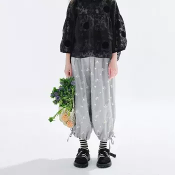 Floral Embroidered Gray Harem Pants